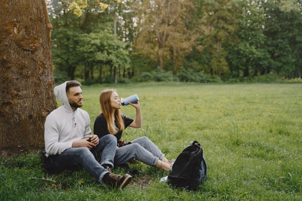Setze auf Filter, UV oder Abkochen statt Einwegflaschen. Entnimm sparsam, schöpfe unterhalb von Lagerplätzen, nutze Siebenschritt-Regel. Welche Filter funktionieren zuverlässig? Teile Tests, Wartungstricks und Lieblingsquellen entlang deiner Hausrouten.
